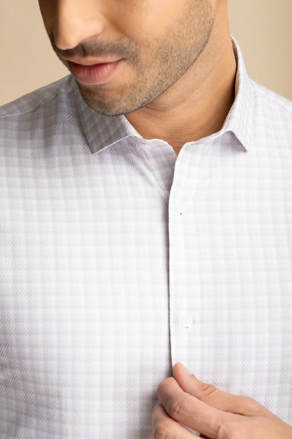 Our light grey check shirt will turn every head in the room. Designed to transcend occasions, our shirts effortlessly bridge the gap between formal and semi-formal. This shirt is crafted from long staple 2 ply 100% premium Egyptian Giza, with superior hand feel and drape. The silky mid-weight makes it comfortable to wear in all seasons. The Egyptian cotton improves the feel and performance, adding great softness and increased strength.